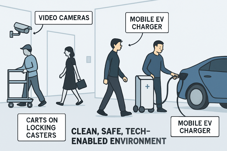 - Adaptability: Mobile EV chargers and modular mechanical equipment allow for reconfiguring layouts to meet evolving operational or safety requirements.